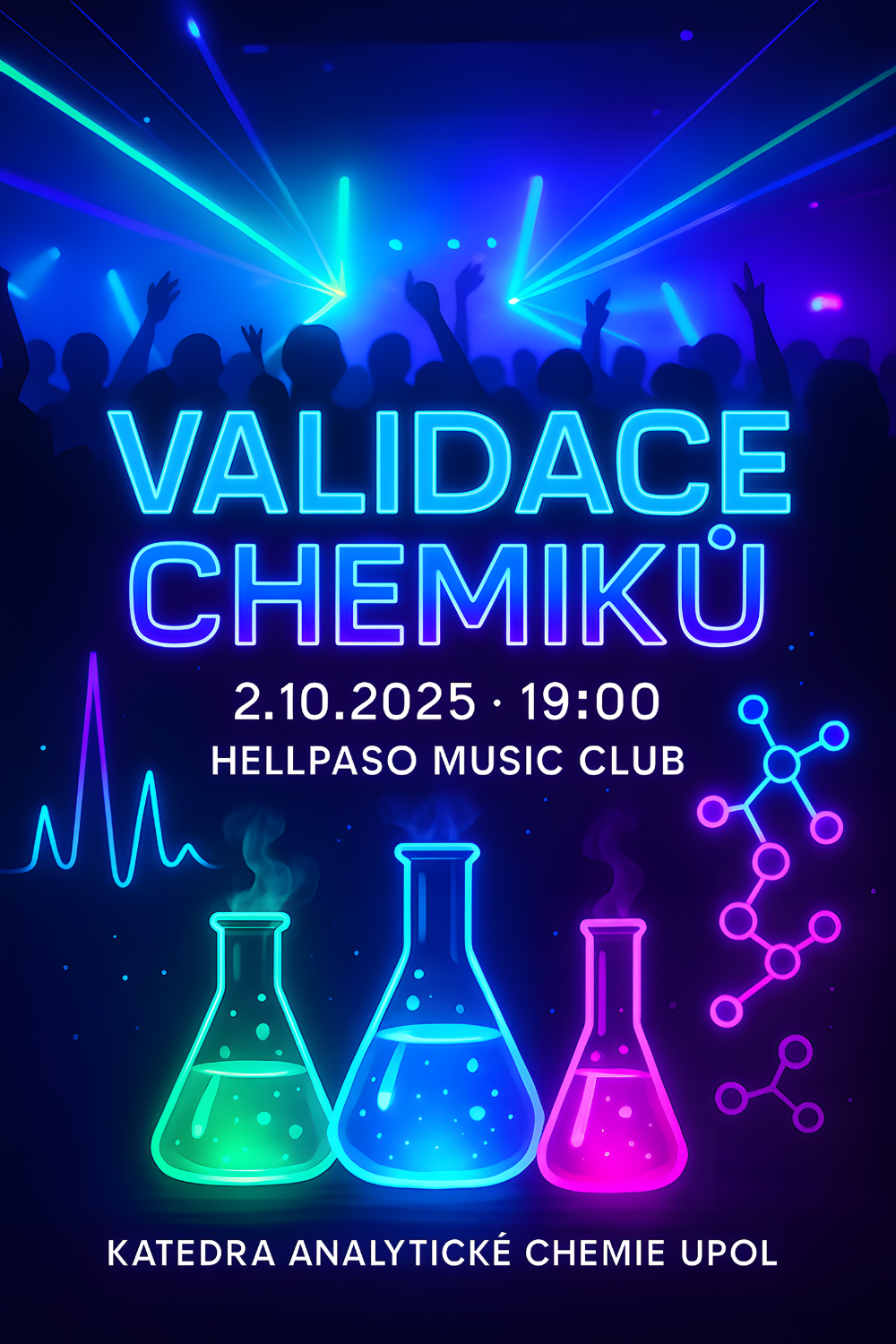 Studenti, přátelé, kolegové, přijďte na "Validaci chemiků" ve čtvrtek 2.10. 2025 od 19:00 v klubu HellPaso Music Club.